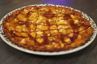 SOME BEACH PIZZA - This pizza starts with our seasonal jam on tandoori naan bread and then topped with cranberries, blended cheeses, french fried onions and parmesan.